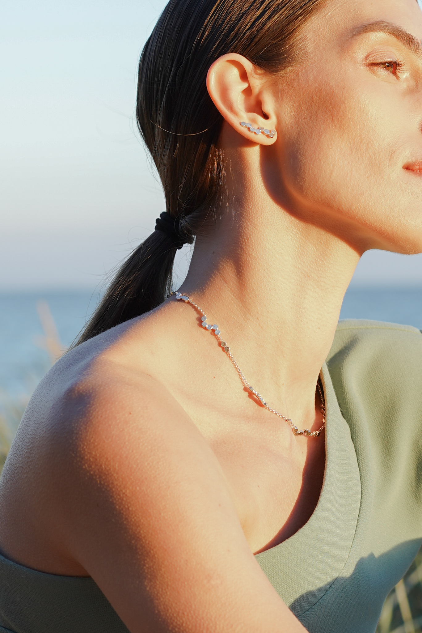 Украшения коллекции Конфетти — это напоминание нашему внешнему миру о красивых и беззаботных моментах счастья. Это счастье с нами было или не было, мы его видели или представляли, но если оно есть внутри нас, оно такое же настоящее, как и всё, что перед нами. И, как всё настоящее, оно несовершенно. Его дорожка неровная, очертания смыты, затоптаны, затуманены. Но это самые дорогие очертания из всех»