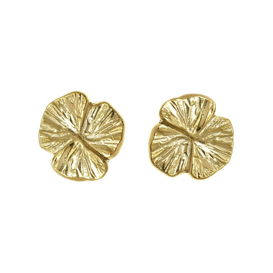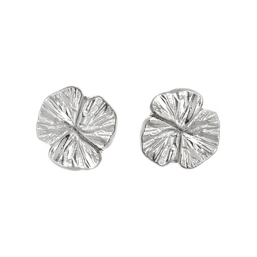 Маленькие серебряные/позолоченные серьги в форме трехлистника. Крепление сережек – гвоздики со специально заниженной швензой, чтобы изделие красиво сидело в ухе и закрывало дырочку.
