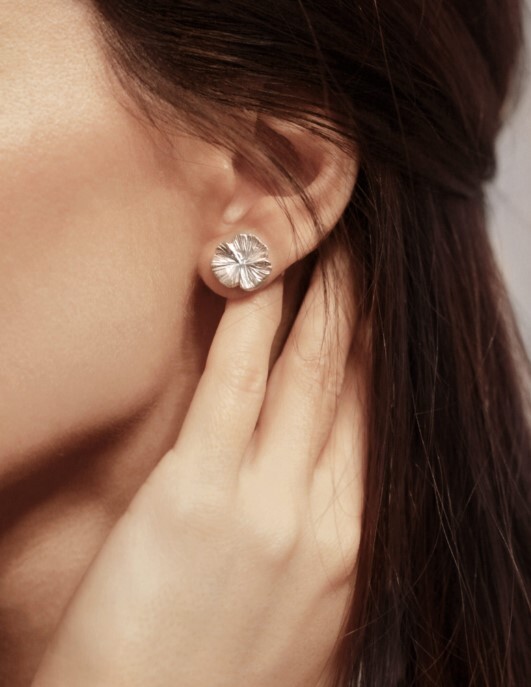 Эти пусеты-цветочки с красивой текстурой и лучистыми переливами созданы полностью вручную. Их образ передает ощущение нежности и хрупкости.