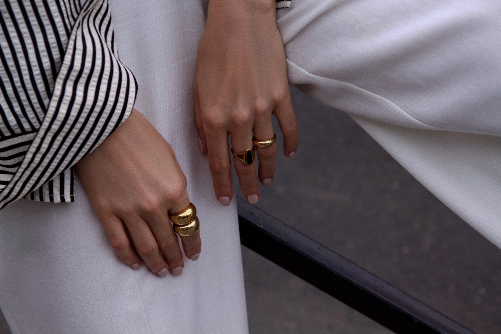 Кольцо HOLLYWOOD — широкое, блестящее, чуть заметнее обычного, но без намёка на вычурность. Надеваешь — и будто всё встало на свои места. Оно не требует к себе внимания, но каждый раз делает образ точнее. Носите его с футболкой, с вечерним платьем, поверх перчаток или на голую кожу. Комбинируйте с кольцами WAY или SMALL HOLLYWOOD. Оно всё выдержит. И всегда будет кстати.