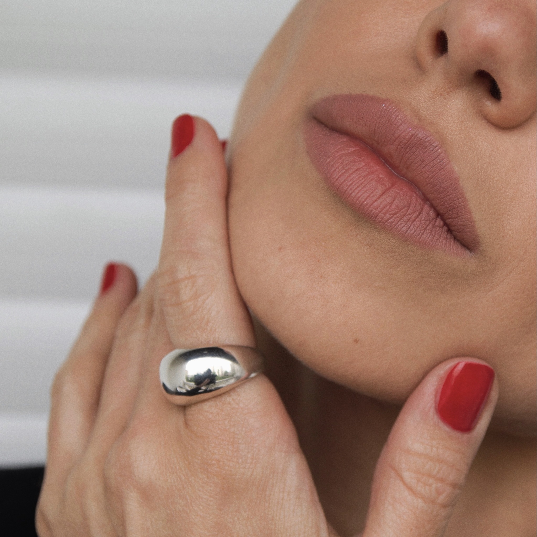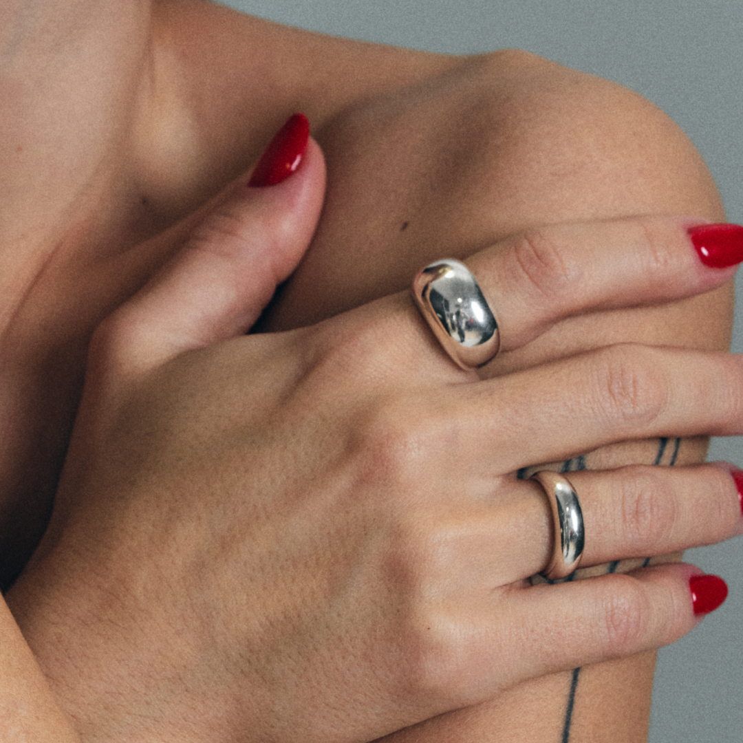 Кольцо HOLLYWOOD — широкое, блестящее, чуть заметнее обычного, но без намёка на вычурность. Надеваешь — и будто всё встало на свои места. Оно не требует к себе внимания, но каждый раз делает образ точнее. Носите его с футболкой, с вечерним платьем, поверх перчаток или на голую кожу. Оно всё выдержит. И всегда будет кстати.
