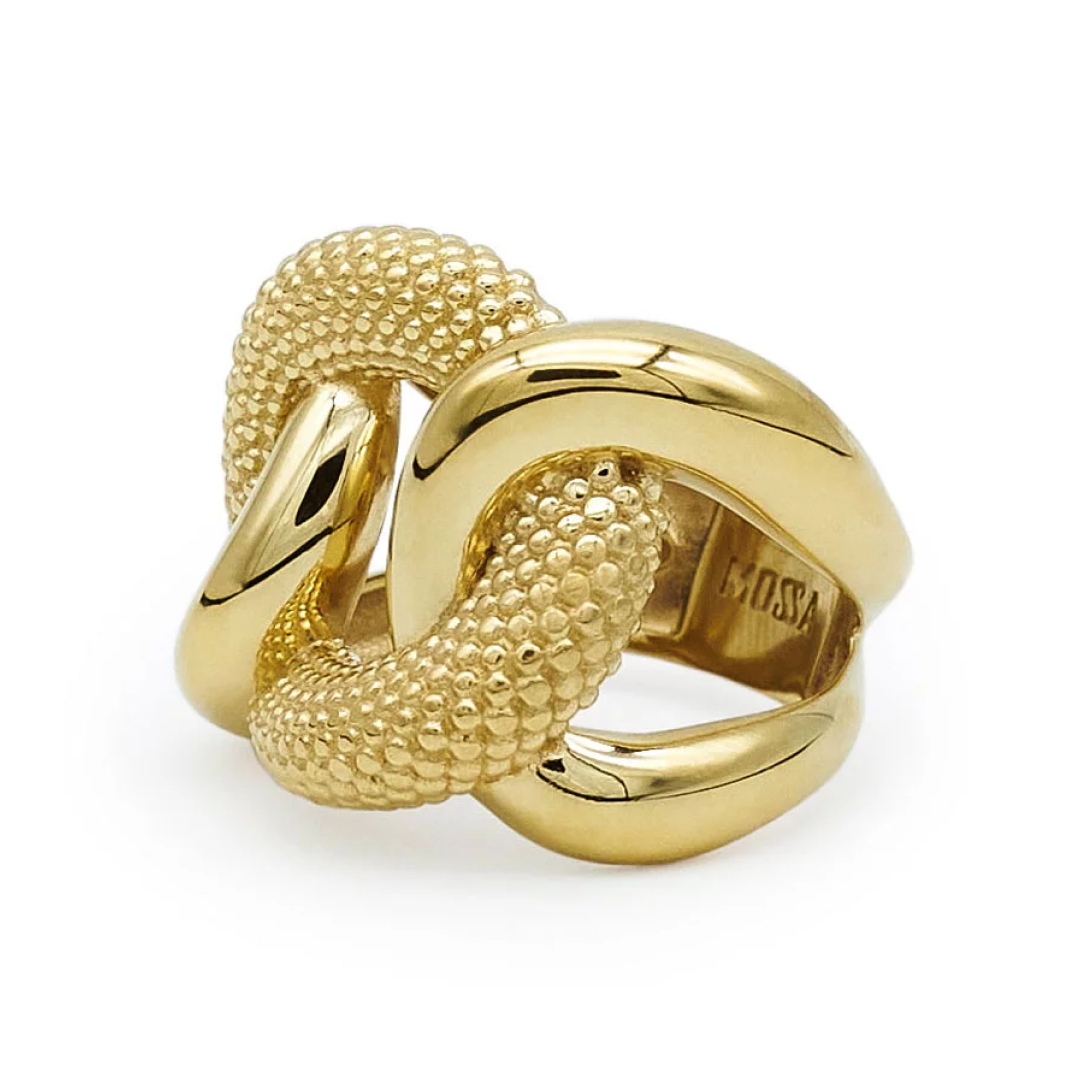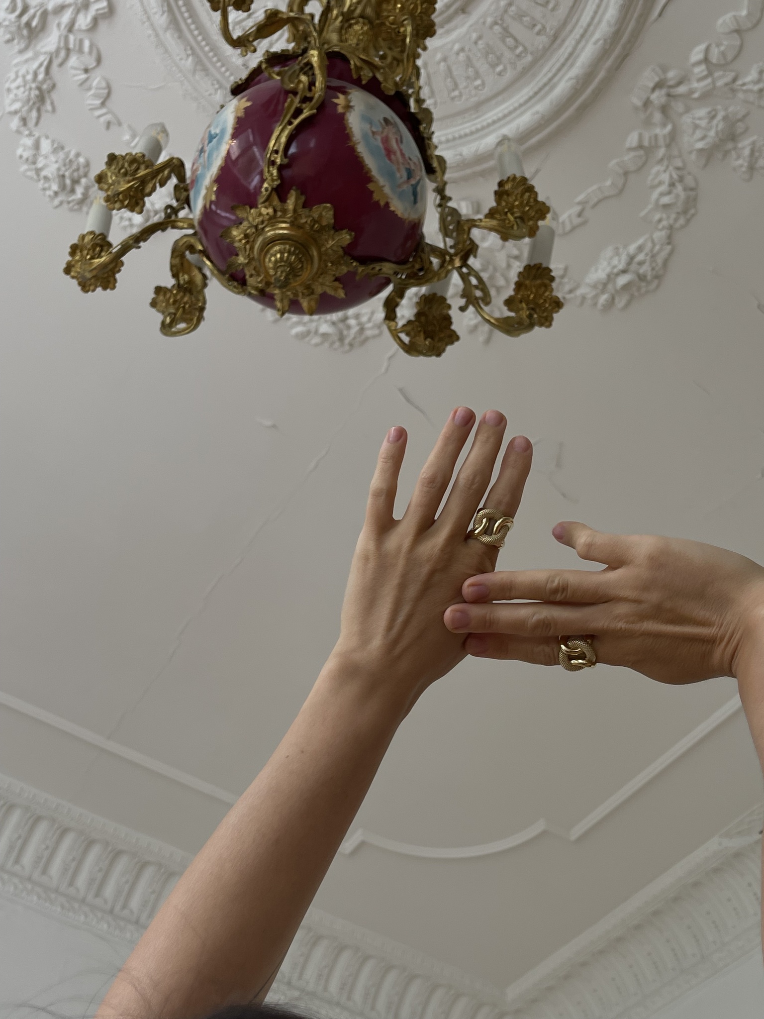 Кольцо KINK — украшение с характером, где разные текстуры и линии переплетаются, как неожиданные повороты в нашей насыщенной жизни. Его изгибы завораживают, в них хочется вглядываться — не спеша, как читаешь письмо, полное намёков, как в изгибы любимого тела, как вникать в закрученный сюжет. Это кольцо для женщины, которая не боится быть сложной, говорить прямо и держать внимание публики. Оно — не про скромность, а про силу, стиль и соблазн.