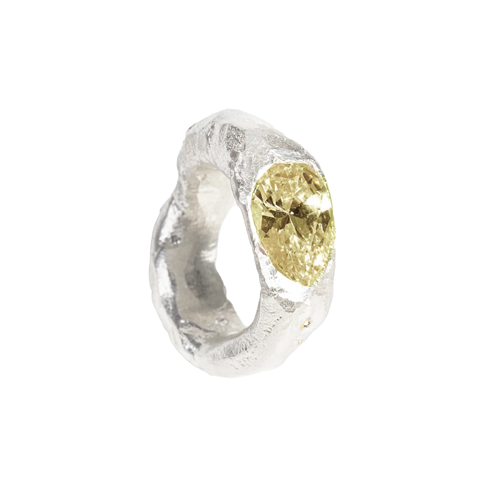 Массивное кольцо с инкрустированным нежно-желтым фианитом формы груша