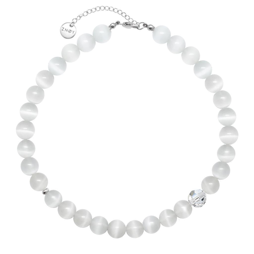 Чокер из стекла с эффектом кошачьего глаза. Дополнен сверкающим кристаллом и металлической вставкой.