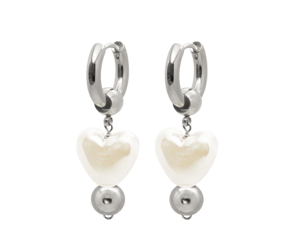 Серги-креолы Энни с подвесками из керамических сердец цвета топленого молока с металлическими вставками. Впишутся практически в любой образ и добавят акцентов!